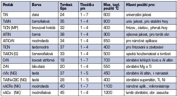 seriál Řezné nástroje, Technický tydeník, 2012Řezné materiály povlakované tvoří v současné době většinu nabídky na trhu; řezné povlaky dovolují podstatným způsobem zvýšit řezné rychlosti, posuvy i životnosti povlakovaného řezného karbidu proti nepovlakovanému, pokroky v povlakovacích technologiích dovolují dodat optimální povlak pro konkrétní způsob použití a tím výrazně zvýšit užitnou hodnotu řezného nástroje.