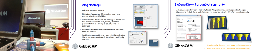 GibbsCAM, jak vyzrát na novinky v11?nové termíny jednodenních seminářů Ve druhé polovině roku 2015 byla uvolněna pro zákazníky v České republice a na Slovensku verze technologického CAD/CAM software GibbsCAM v11, která je k dispozici všem, kteří měli aktivní roční aktualizační servis platný ke dni 1. 7. 2015. Od začátku ledna 2016 probíhají jednodenní semináře na téma „GibbsCAM, jak vyzrát na novinky v11?“ Semináře probíhaly v Praze a v Brně v prostorách společnosti technology-support s.r.o. a v prostorách partnerů. Prvních pět termínů těchto seminářů zájmu uživatelů GibbsCAMu nestačilo, a proto jsou k dispozici další plánované bezplatné semináře ve dnech: 2. 3. 2016, Praha, Dusíkova 19 9. 3. 2016, Brno, Pekařská 18 16. 3. 2016, Praha, Dusíkova 19 30. 3. 2016, Praha, Dusíkova 19 V průběhu semináře pracuje každý z účastníků na své počítačové stanici, se školitelem prochází tématické celky novinek GibbsCAM v11 a sám si na příkladech vyzkouší možnosti využití ve své každodenní praxi NC programátora CNC obráběcích strojů. Dále je prostor věnován i informaci o manuálech a výukových tutoriálech jednotlivých modulů GibbsCAMu, které jsou plně lokalizovaný do českého jazyka. Ve druhé polovině dne je cíleno na nové možnosti postprocesingu, tj. generování NC programů, dále přípravě seřizovacích listů a operačních návodek a také kinematické simulaci pro jednotlivé typy CNC obráběcích center. Vlastimil Staněk, [email protected]